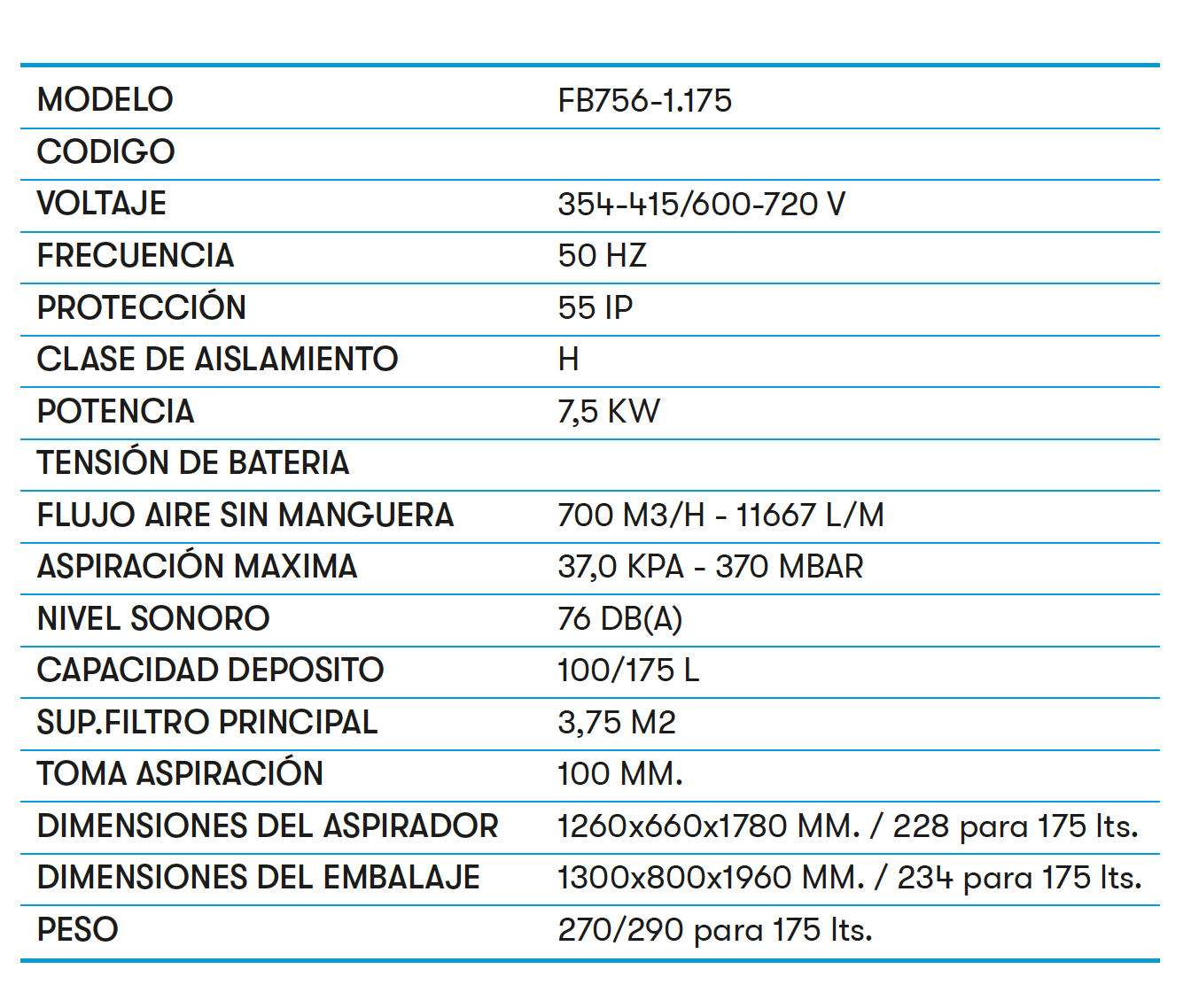 ASPIRADORA 7,5KW 400V ESTANQUE 175 LTS