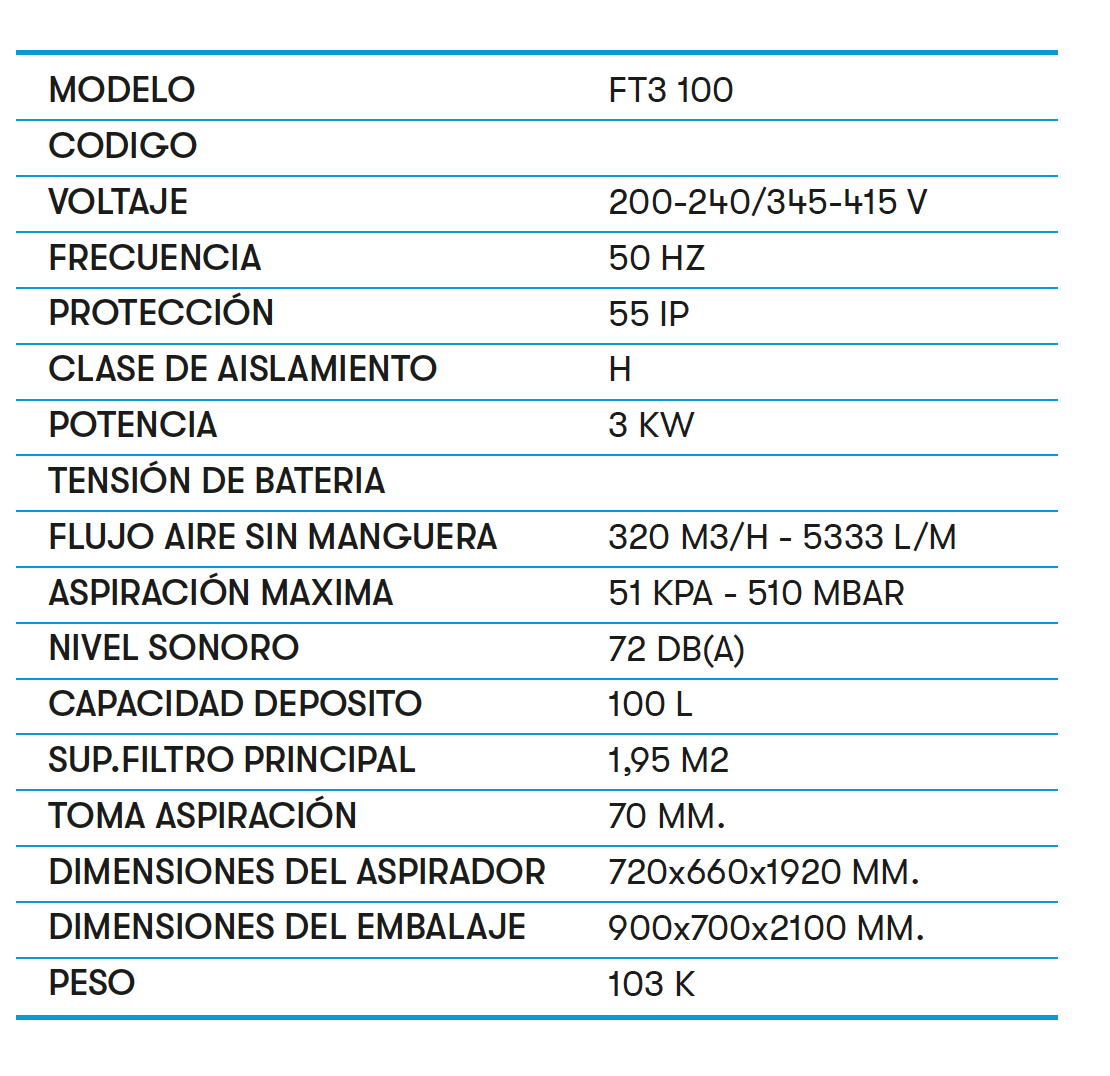 ASPIRADORA 3KW 400V ESTANQUE 100 LTS